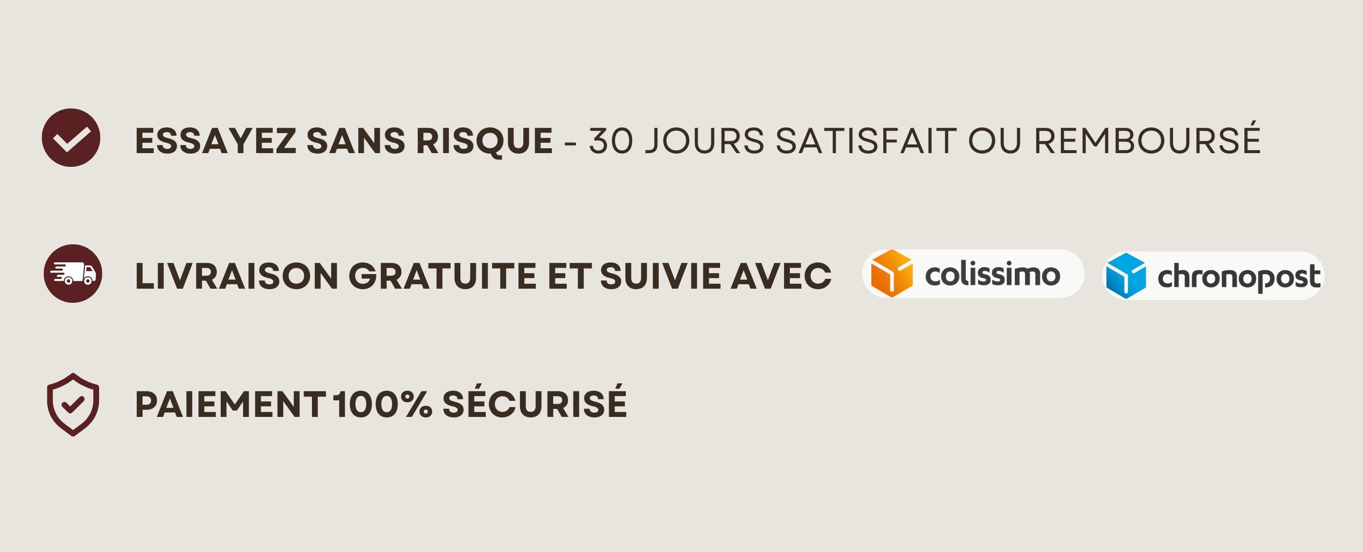 Une fois votre demande reçue, nous vous accompagnerons tout au long des étapes nécessaires pour le renvoi de votre colis. Dès sa réception, nous procéderons à un échange ou à un remboursement, selon votre choix.
